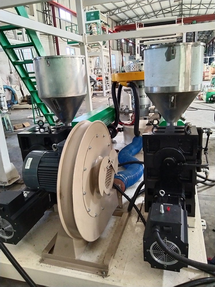 ⑤主機(jī)采用直連傳動(dòng)效率高,省去了皮帶損耗產(chǎn)生的成本,避免了皮帶老化打滑造成的螺桿轉(zhuǎn)速不穩(wěn)定,從而保證擠出量以及厚薄的穩(wěn)定;