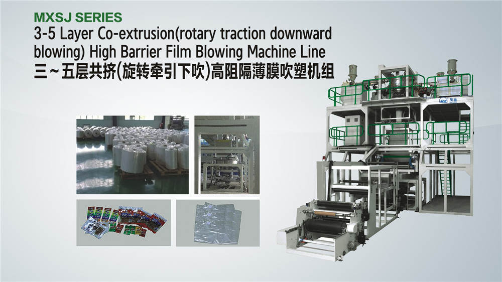 MXSJ-55-5-1200型 三~五層共擠(旋轉(zhuǎn)牽引下吹)高阻隔薄膜吹塑機(jī)組