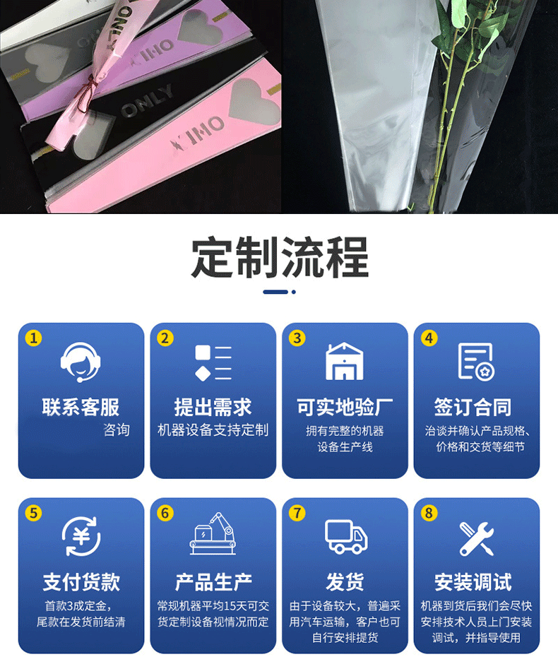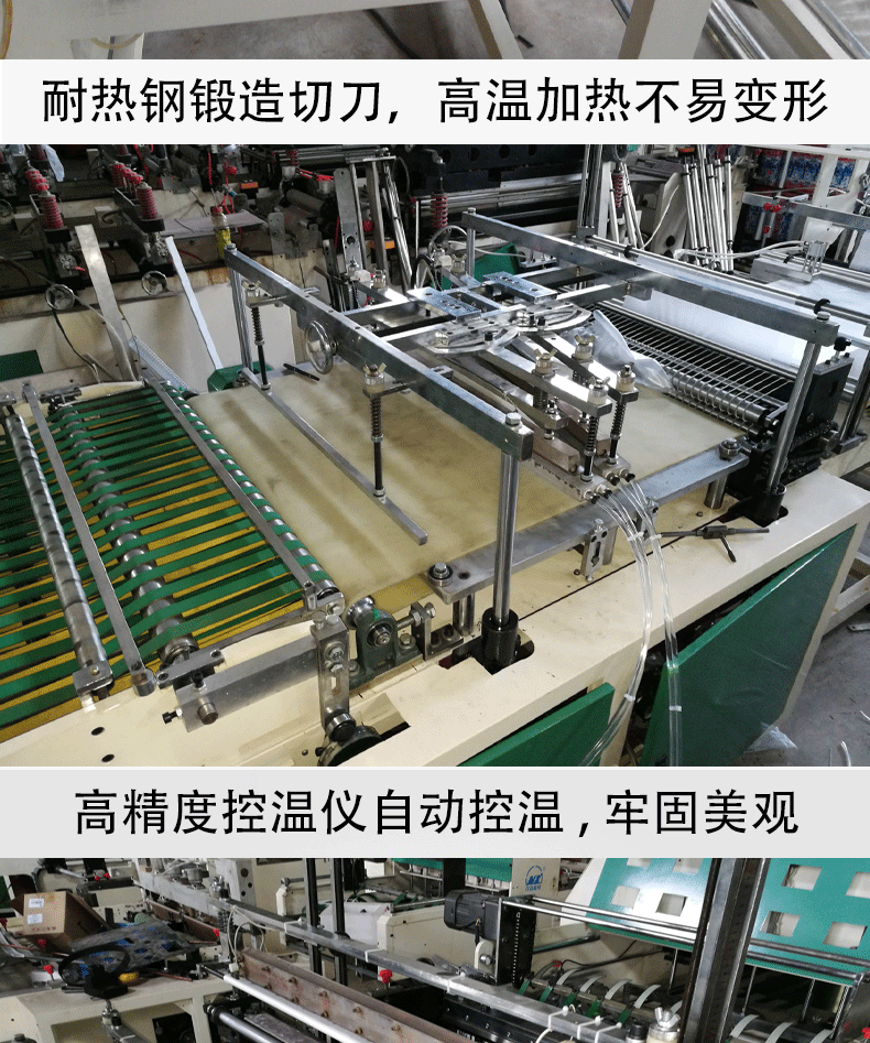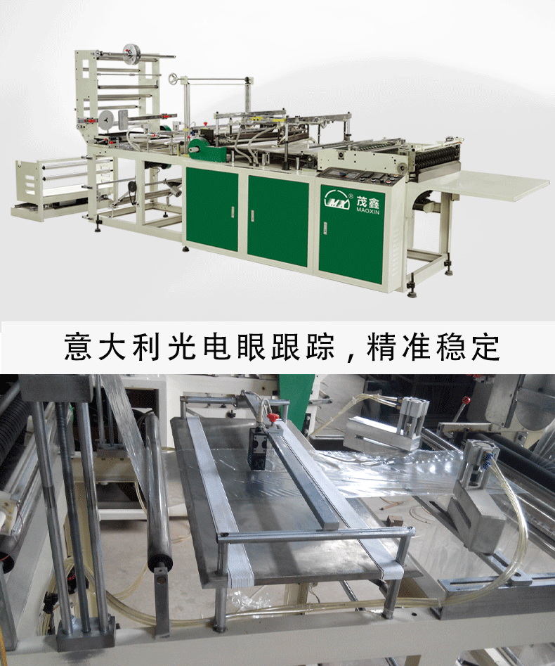 | 特點(diǎn): *該機(jī)適用于BOPP、OPP、CPP、PE、PP等熱塑料性薄膜進(jìn)行自動(dòng)連續(xù)加工異形熱切袋,適用于制作服裝袋、文具袋、鮮花袋、三角袋等。 *采用日本伺服馬達(dá)控制,主電機(jī)采用臺(tái)灣變頻調(diào)速,意大利光電眼跟蹤彩印,出袋輸送裝置采用進(jìn)口皮帶及臺(tái)灣變頻調(diào)速。 *放料架配置自動(dòng)糾偏、磁粉制動(dòng)張力控制系統(tǒng)。 *采用高精度控溫儀自動(dòng)控溫,使不同厚度的膜都能保證封線(xiàn)牢固美觀。 *熱切刀采用進(jìn)口耐熱鋼鍛造,高溫加熱不易變形,封棍采用耐高溫硅膠材料。 *電腦控制系統(tǒng)具有自動(dòng)計(jì)數(shù),累計(jì)數(shù),提前報(bào)警,暫停等功能,自動(dòng)控制開(kāi)停機(jī)。 *根據(jù)客戶(hù)加工不同袋樣,可更換異形刀模具。 *由于不斷研究改進(jìn),我司保留改變?cè)O(shè)計(jì)之權(quán)利。 |