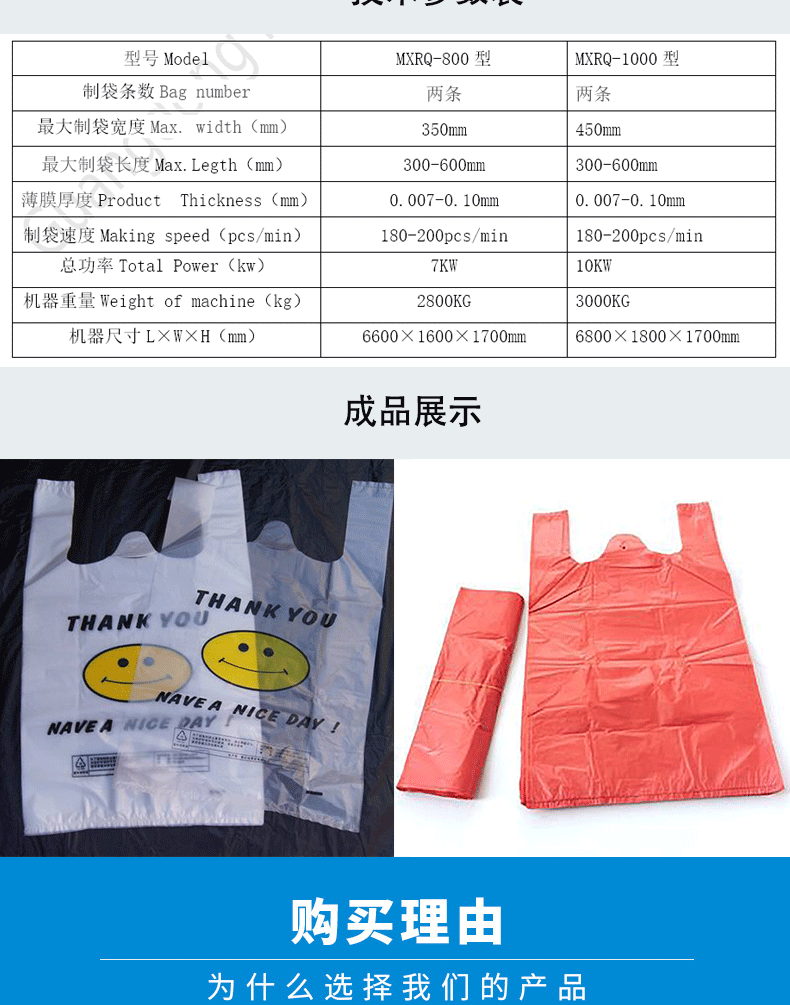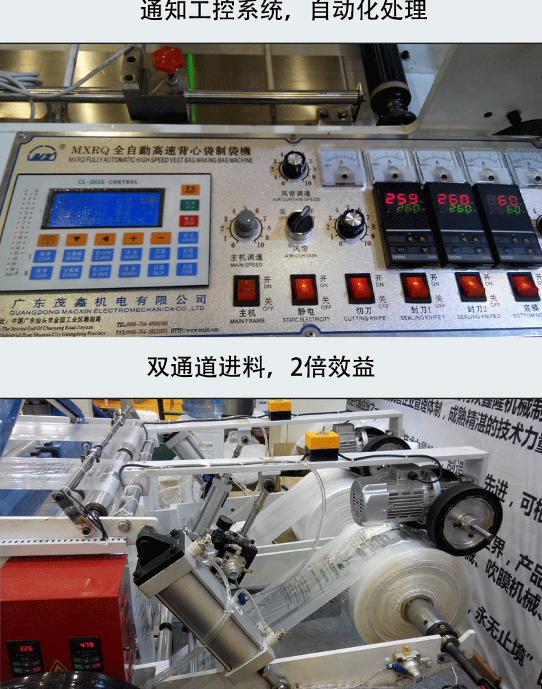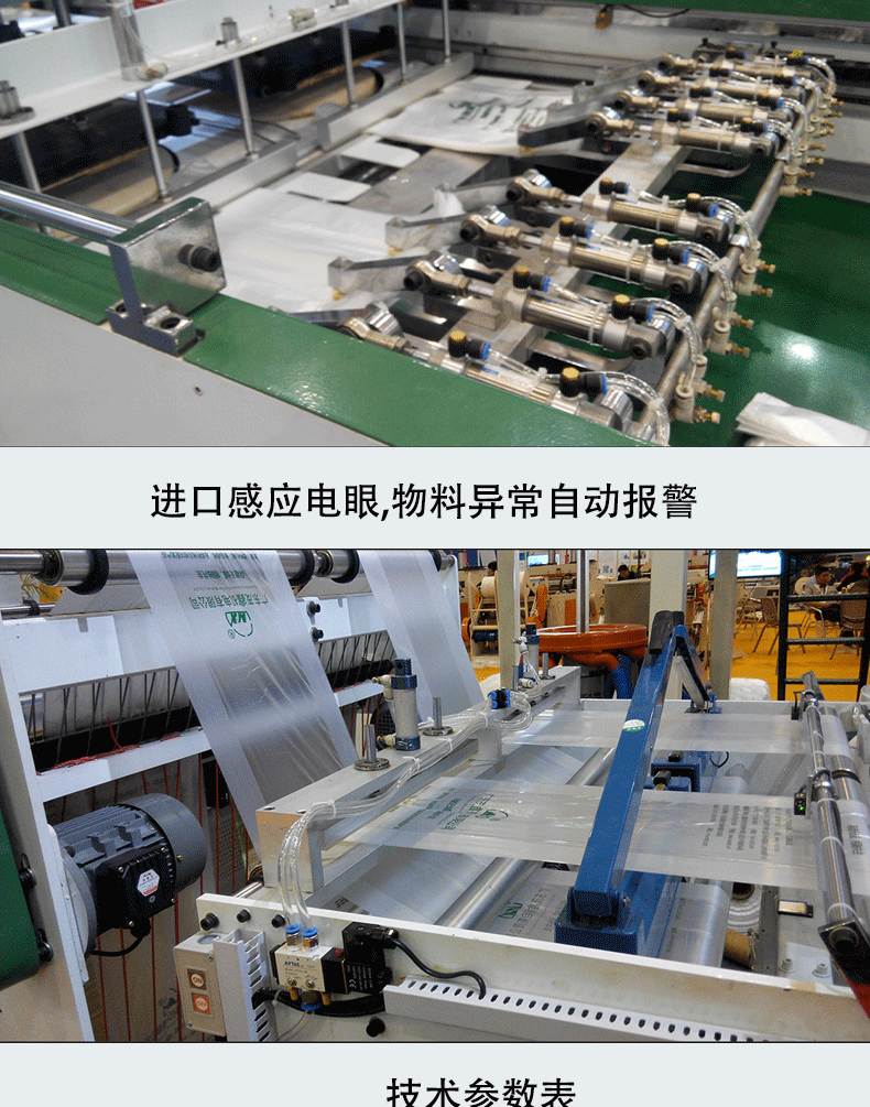 *該機適應于制作HDPE、LDPE、PP等筒膜的背心袋。